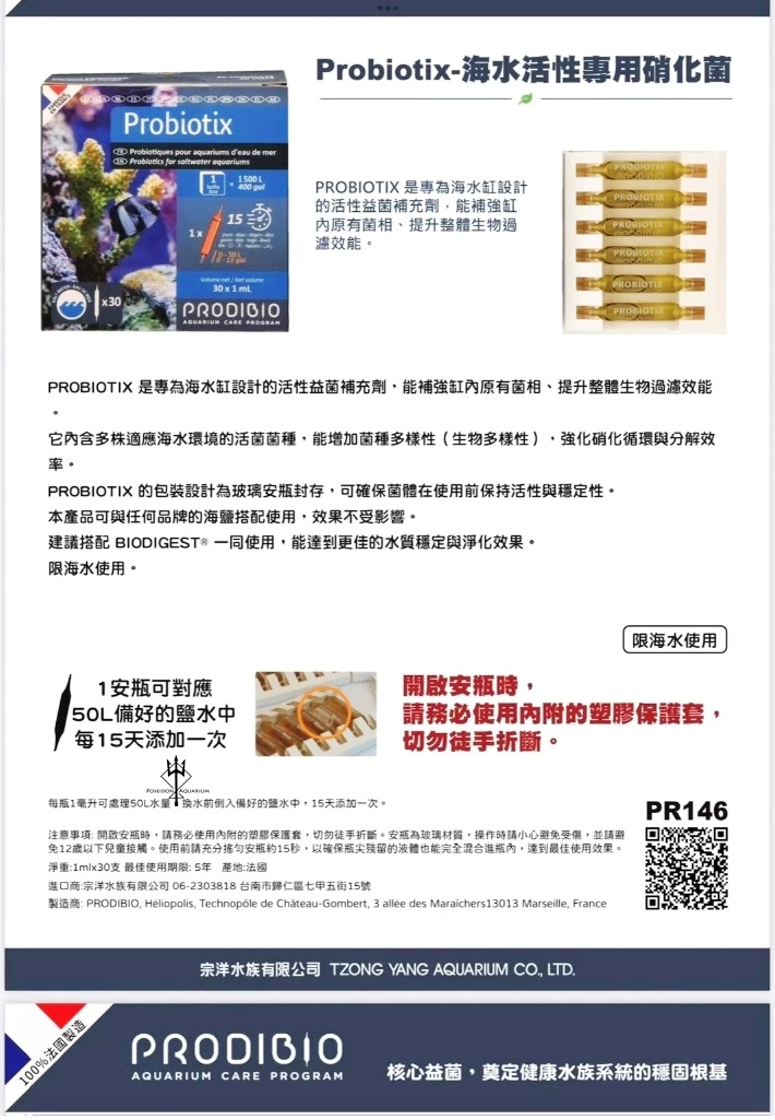 PROBIOTIX 是專為海水缸設計的活性益菌補充劑,能補強缸內原有菌相、提升整體生物過濾效能。