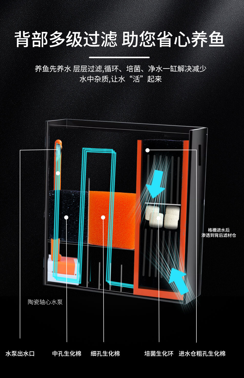 多級過濾 反復迴圈保持水質清晰 淨水濾材 反復使用 PC高透護角防止磕碰