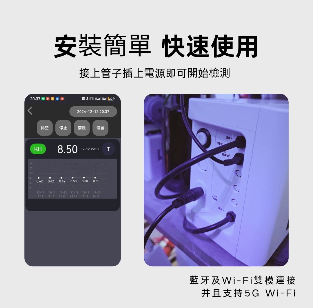 智慧連線:支援 WiFi、藍牙、5G,透過 Simalai App 遠端監測與自動調整 KH。
